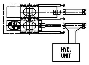 FOR SMALL EXTRUSION LINES (UP TO 120mm) WHERE THE LINE CAN BE STOPPED FOR A FEW MINUTES. THE MOVEMENT IS SLOW, BUT IS HYDRAULICALLY OPERATED.